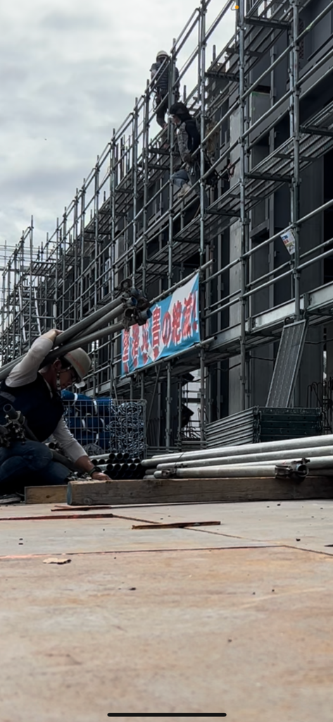 今日は昨日に引き続きマンションの基礎足場工事を行いました!