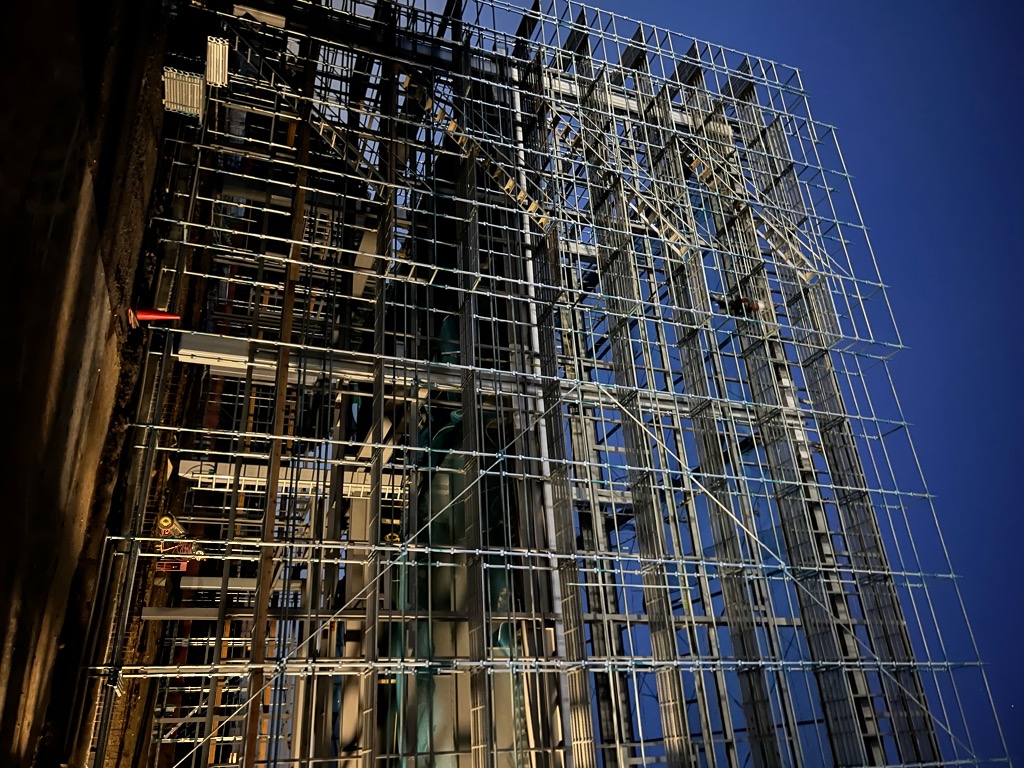 大縣工業の最近の作業内容は主に仮囲い組み立て、S造足場組み立てがメインになっています。